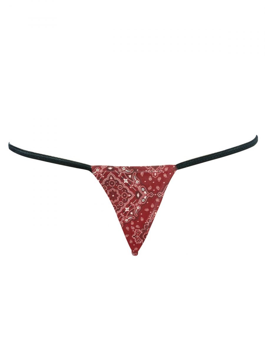 Red bandana print thong. The string is smaller in person,(micro). The string also comes in white as well. Thong is not meant for long wear , mainly for aesthetics!